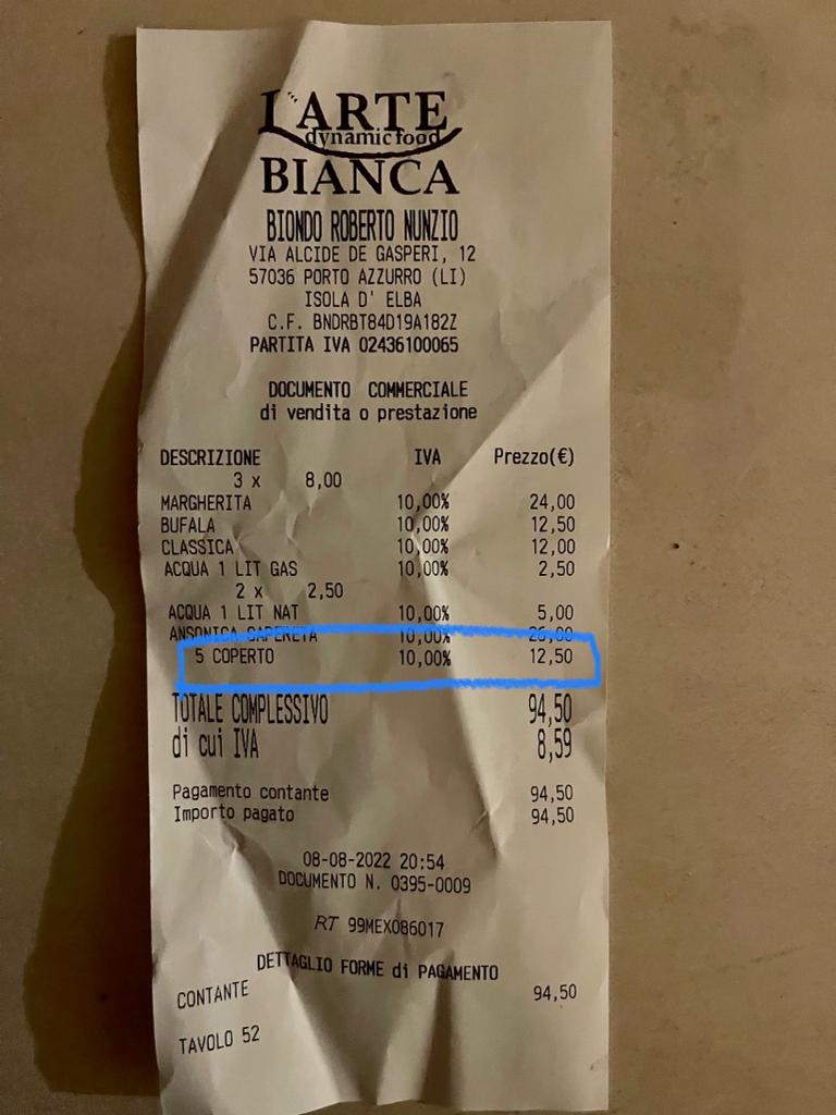 First of all : there are many pizzeria's in Elba that make great pizza's.' Arte pretends to be the best...and is not. But hey, that is somewhat subjective, apart from the fact that all of our guests where sick after the meal. Must be a coincidence... What is not a coincidence is the apalling brutality of the staff, the music that is playing like you are in a discotheque ( 3 tables during our stay wanted to move and one table left before ordering anything...).... But hey, you have the view over the harbour...please stay away from this restaurant, unless you want to be ripped off. I saw many crowded but cosy restaurants with owners that are proud to serve their local dishes. Here they really do not care if you like it or not. They just want you to pay and shut up . Disgusting is the right word. And in the end ??? They charge you 12,5 euro's for the usage of the table cloth....if i could give this a zero i would do it immediately. I want to warn people for this kind of places...it ruines your night...and gives you a distorted image...
