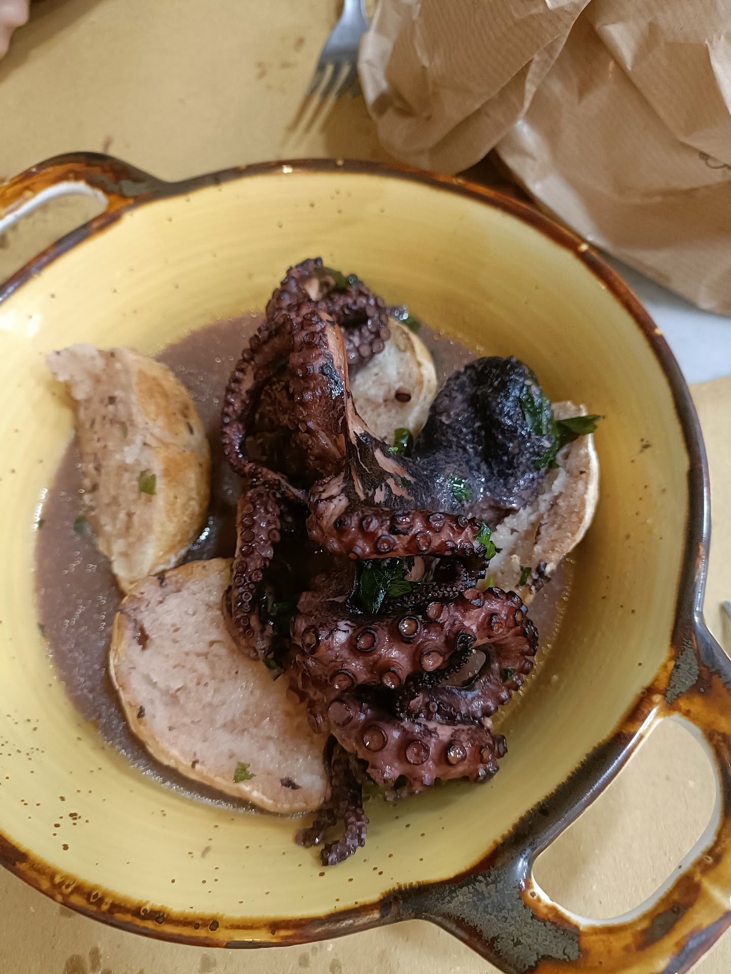Read moreHo prenotato di sabato mattina per la sera alle 21 1 adulto e 2 bambine di 3 e 5 anni. Arrivo con 5 minuti di anticipo. Il locale è un buco 15/20 coperti max tutti appiccicati con tavolini traballanti scomodossimi! Il personale sono solo 2 persone, una in cucina e uno in sala che passa più tempo fuori a fumare che a preoccuparsi dei tavoli. Ci prendono l'ordine dopo 40 minuti (21:40)! Mi comunica che è praticamente finito tutto sono rimaste solo cozze, pasta alla salsiccia e un polipo precotto in esposizione nella vetrina più sudica che abbia mai visto! Ordino un fritto misto una pasta alla salsiccia e il polipo imbalsamato, alle 22:10 il tipo rientra dall'ennesima sigaretta mi tocca sulla salla e mi dice: "ci siamo"! Dopo un 'ora e un quarto le bambine iniziano a lamentarsi insofferenti! Alle 22:30 il tipo è ancora fuori che fuma, il posto è praticamente vuoto, ma del cibo nessuna traccia! Vado fuori mentre fuma e gli chiedo il conto! Lui stizzito mi dice la pasta è "in produzione" dico che la pago senza problemi. Alle 22:40 con le bambine affamate mi confeziona la pasta e il fritto mentre il polipo mummificato dice che posso non prenderlo tanto si conserva!!! Arrivati a casa butto tutto in pattumiera! Una schifezza mai vista! Scarsisima qualitá scarsissimo libello di cucina! Se siete celiaci e volete farla finita è il posto giusto! Però non portate bambini celici in questo postaccio! Infine prenotare non serve sono disorganziti e disinteressati alla qualitá! Ho prenotato alla mattina per le 21 e alle 22:40 2 bambine celiache non avevano ancora mangiato in un posto che tiene si e no 20 persone! Che schifo!...