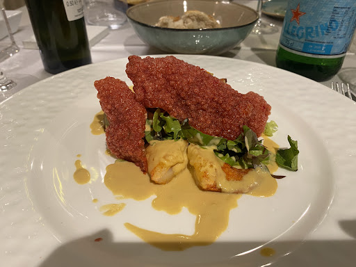 Very authentic Italian experience, we were surrounded by families celebrating baptisms (with the little kids still happily running around at midnight!), wedding proposals etc. The service is also quite traditional, for better le for worse. It’s quite charming, and the waiters are super efficient, but the refusal to change any of the dishes whatsoever from the tasting menu is a shame. Food wise, the seafood is fresh, as you’d expect from any restaurant on that beautiful coast. But the more complex gastronomic preparations do let it down - the dishes often lack balance (for example one of the pasta sauces just tasted like butter) and some of the more interesting attempts don’t come off and just taste odd (like mackerel with caramel for instance). The tortelli with foie gras was lovely, but the red mullet topping it was unsurprisingly totally lost.
