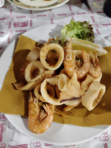 Read moreLOCATION trattoria con parcheggio lungo una provinciale. Quasi tutti i tavoli sono arieggiati ed all'aperto, la maggior parte sotto un portico (che da un lato ha un cammino in muratura). Tavoli apparecchiati con tovaglia e tovaglioli di carta, abbastanza vicini tra loro, ma non così tanto da non permettere conversazione. PERSONALE: Gentile, accogliente e sorridente. MENÙ: Eravamo in 4. Abbiamo ordinato due antipasti di frittini misti: crocchette di patate con menta nell impasto, polpettine di carne (dure e con finocchietto) e dei bocconi di semola fritta di cui non ricordo il nome buoni (ricordano il gnocco fritto però si mangiano da soli). Non ci sono piaciuti a causa della menta e del finocchietto che non erano citati nel menu e che coprivano tutto. Primi: 3 cavatelli con frutti di mare e 1 maritati con polpette. Porzioni ridotte sia per la pasta che per i frutti di mare (come si può vedere dalle foto) sapore buono. Maritati più abbondanti con le polpette, che erano le stesse dell'antipasto, per fortuna sono stati scelti dall'unica persona su 4 a cui erano piaciute. 1 fritto misto di pesce: buono, ma davvero ridotto come quantità. CONTO:2 antipasti, 4 primi, 1 secondo, 2 acque, 1 bianco ed 1 caffè. 88€ Considerando l'ambiente semplice (che ci piace) ci aspettavamo porzioni più soddisfacenti soprattutto dato che il primo piatto di cavatelli costa 13€ che non è un prezzo da trattoria. Non torneremo. Peccato perché il personale ci è piaciuto. Accettano cagnolini e carte di credito. In questo periodo meglio prenotare soprattutto perché molti vengono per...