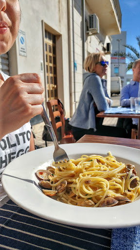 Read moreDA EVITARE! Io e la mia morosa ci siamo lasciati attirare da questo ristorante per il notevole numero di persone sedute ai tavoli e per i piatti all’apparenza invitanti e abbondanti; così la sera successiva ci siamo recati qui per cena. Appena arrivati ci hanno fatto accomodare in un tavolo vicino all’ingresso con delle biciclette appoggiate di fianco.. Dopo circa 15 minuti di attesa e diversi richiami, il cameriere finalmente ha preso l’ordinazione. Abbiamo ordinato delle patatine fritte da mangiare come antipasto, 2 spaghetti con le vongole, una frittura mista e del vino. Unico piatto che si è salvato è stato l’antipasto, il resto lascia a desiderare: spaghetti con le vongole con vongole inesistenti, erano praticamente tutti gusci vuoti , e le poche presenti non avevano sapore. Sembrava di mangiare uno spaghetto con aglio e olio .. Prima di iniziare a mangiare mi sono accorto di avere la forchetta sporca.. In tutto ciò il vino è arrivato a metà primo piatto, nonostante l’avessimo richiesto più volte a diversi camerieri. Probabilmente è arrivato solo perché il proprietario ha sollecitato i camerieri. Per quanto riguarda la frittura, era imbevuta d’olio e molliccia. Peccato perché i gamberi e i calamari in se erano buoni.. Data la grande delusione che abbiamo avuto, ci siamo alzati da tavola a metà secondo per andare a pagare. Probabilmente il proprietario si è accorto che la cena non era andata per il verso giusto e ha tentato di rimediare facendoci un leggero sconto e facendoci portare via il vino non finito. Prezzo sinceramente non onesto con l’esperienza. Sconsigliato per cene romantiche. I camerieri incompetenti e poco disponibili verso i clienti (uno dei problemi principali). Meno tavoli e una rivisitazione del personale potrebbero davvero andare a cambiare in meglio questo ristorante (cosa che speriamo per il proprietario che sembrava simpatico). Ci auguriamo che la nostra cena sia un caso isolato. Tavolo 1 della sera...