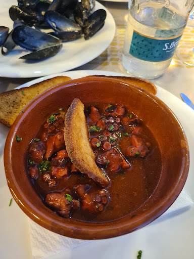 Ho mangiato un antipasto di polpetto in pignatta con scarpetta al seguito, uno spaghetto e con cozze e vongole ed infine un semifreddo. Tutto era molto buono, soddisfacente, ben condito e di porzioni generose .