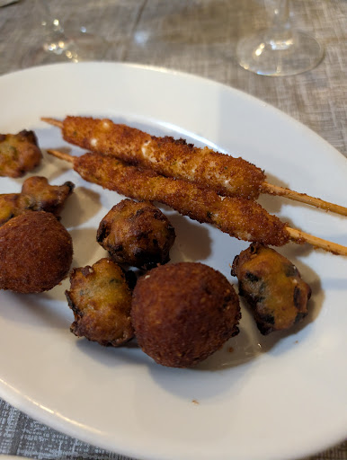 Appetizer: The fried meat appetizers were decent but consisted mostly of fried vegetables. The octopus was well presented, but way to salted. Too bad because the taste of the "sauce" was good. Main course: The Linguine alle vongole(clams) was a pasta with oil with little to nothing of clams and flavour of it. The spaghetti with mix of seafood had not much taste of fish but at least was not over salted.