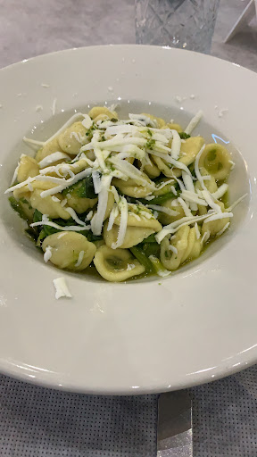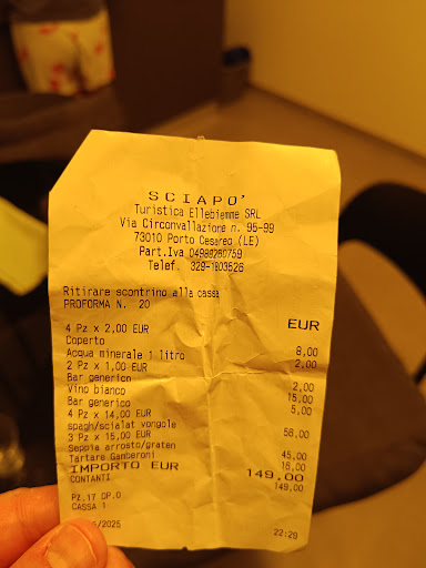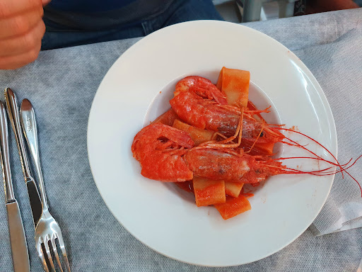 Read moreAppena arrivate in questo ristorante, abbiamo chiesto un tavolo all'interno, data la serata un po' ventosa, ma, nonostante tutti i tavoli fossero liberi (rimasti tali per l'intera cena), il proprietario ci ha detto che al momento non era possibile poiché bisognava dare la precedenza agli ospiti dell'annesso hotel (ma poi ci avrebbe spostati ad un tavolo all'interno a metà cena??? Mah!!!!)... Si presenta lo chef che per tutta la sera ci racconta, prima, di essere il proprietario, di avere un ristorante identico a Parigi alla Bastiglia, di aver studiato in Francia... dopo un po' ci dice di essere socio, che il ristorante gemello era a Montparnasse e ci racconta dei suoi fantomatici viaggi intorno al mondo, millantando di essere stato il cuoco di Sarkozy... Menù scarno: gli scialatielli e la frittura di pesce buoni ma le patate fritte e poi ripassate nel burro ("alla provenzale" a detta dello chef) incomprensibili. La baguette in una regione che ha tante varietà di pane senza alcun senso. Infine l'amaro "artigianale", fatto dal proprietario, tanto decantato, è solo un intruglio da avanzi di bottiglie, annacquato e imbevibile. Per fortuna, offerto!! Il conto per un primo, un secondo, due patatine fritte, due calici di vino, una bottiglia d'acqua 56€... Un'esperienza a dir...