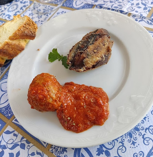 Read moreOrgoglioso della foto con Camilleri sembra appunto uscito dai suoi libri😄Sicuramente é un esperienza..alla fine mi ha fatto sorridere a modo suo,per non piangere,,ma non comprendo bene la filosofia e tutta la commedia che il proprietario,chef e pure cameriere e cassiere si deve sobbarcare ogni sera, per mettersi a discutere puntualmente ogni sera con il cliente confuso o scocciato,dalla totale mancanza di un qualsiasi menú e del prezzo dei tuoi piatti.Mai visto prima 😂 ti crea ovviamente una certa ansia durante tutta l esperienza.Lui dice "Fidati,tranquillo..." ma non ispira fiducia.Non sai se ordinare ancora ,se hai fame,perche i prezzi li scopri alla fine .Uno strazio.Pos "é rotto".Iñ Conto alla fine come in un ristorante di pesce classico con i menú e un servizio come si deve(ah,non scriveve le comande e le richiedeva 5 volte per tavolo ...)Ti aspetteresti in un setting cosi e con tutta questa suspence che venga non dico la metá ma quasi,magari avrebbe un sendo tutta sta tiritera 🥲Ah,il pesce comunque era buonissimo ,cucinato bene e sughetto delle cozze delizioso. .che dire scegliete voi se ne vale la pena,almeno se leggete la recensione lo...