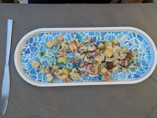Read moreDurante il pranzo anche i proprietari si fermano a pranzare e con "parenti o mezzi parenti" si fotografano piatti che i proprietari stessi mangiano così d farsi recensioni FINTE. Nel frattempo noi ordiniamo anche una grigliata mista, che nel menù è indicata senza prezzo poiché dipende dal pescato del giorno. La cameriera ci informa da che cosa era composto il piatto e che sarebbe costato 24 Euro. Peccato che al momento del conto viene segnato con 30 EURO!! Chiediamo spiegazioni, senza mai scusarsi o chiedere se volessimo un servizio, anche solo un amaro o un dolce offerto, dicono che è stato segnato di più poiché ci hanno messo un pesce in più. Diciamo che non è vero, e che ci è stato portato unicamente il pesce elencato dalla cameriera, a quel punto viene data la colpa alla cameriera poiché un piatto con del pescato che varia in base alla giornata (così è scritto sul menu) è stato messo a 30 euro da DUE SETTIMANE!!!! Quindi pesce del giorno o di due settimane fa?? In ogni caso qualità prezzo davvero scadente, abbiamo preso un'insalata di polipo con patate già pre tagliate che avranno avuto almeno 3/4 giorni, e la grigliata pagata 30 EURO consisteva in una sogliola 4 cozze gratinate 4 pesciolini gratinati e uno spiedino di calamari tutto gratinato al forno, di grigliato NON C'ERA NULLA RIPETO EVITATE DI ANDARE SE SIETE TURISTI!!! CLASSICO POSTO...
