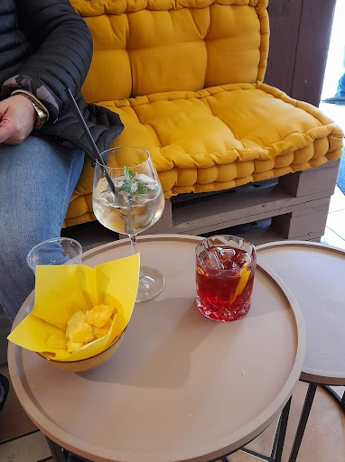 Ai primi di luglio 2022 , in un sabato ventilato e fresco di 26° a Porto Recanati - Di fronte al Kursal , si trova qst localino cn all'esterno una graziosa"pensilina" dove sotto sn "alloggiate" caratteristiche sedie e tavoli personalizzate ( "dipinti") in parte cn mano artistica , ci "attirano" ad una sosta per un "ape" (bar tab. Sessa ) . Due prosecchi , a fianco cn noccioline , patatine e olive verdi (e.4,00 cad.) a seguire una pizza rossa ed un panino al burro cn cotto (e.1,50 cad.) ed infine un gin cn ghiaccio (e.4,00) .La ragazza smpr disponibile e familiare al servizio (Lucia la titolare)...