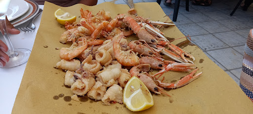 Read moreIl ristorante si presenta in modo molto semplice all’esterno, tutto dipinto d’azzurro, ma una volta entrati si rivela molto raffinato, con un suggestivo portico vista mare. Il personale è molto cordiale, ci sono stati persino offerti dei simpatici braccialetti contro le zanzare. Il menù è molto ricco, soprattutto per i numerosi antipasti che ci hanno stupiti, molto buono anche il fritto misto. L’unica pecca è forse la mancanza di un vasto assortimento di vini, che comunque non si è affatto rivelato...