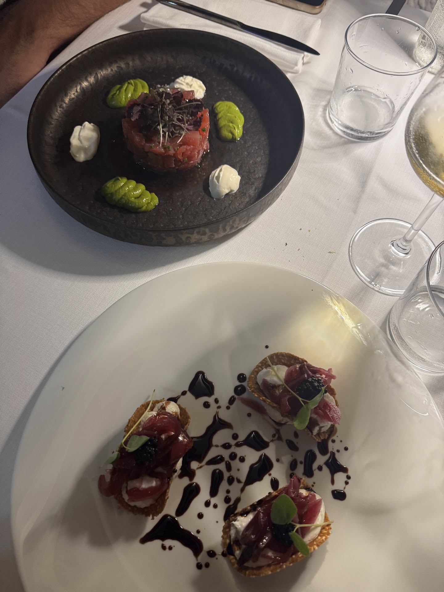 Read moreTutto sommato ok. Servizio veloce, impeccabile ed efficiente. Sono andata anche per il piatto di capesante e mi hanno stupito come sempre, al contrario della grigliata che purtroppo non abbiamo gradito tanto… pesce non nostrano e non fresco… ma sono scelte! Peccato. L’insalata invece che accompagnava era sfiziosa, fresca e adatta. Tartare di tonno sapore un po’ amaro ma molto buona, saranno gli abbinamenti con le salse. I tacos di baccalà erano speciali, i tacos fatti alla perfezione, il baccalà era mantecato benissimo, cremoso, gustoso. Buono buono buono. Comunque ci ritornerei sicuramente, la mia idea è quella che qui bisognerebbe assaggiare i piatti speciali e particolari, perché gli abbinamenti e gli accostamenti sono sempre azzeccatissimi e quasi perfetti. Sui grandi classici non mi soffermerei. Dolci buonissimi, un fine pasto eccellente. 65€ a testa solo con un calice di vino, due acque e due caffè, ma ci può stare, i prezzi da menù erano già abbastanza pieni e secondo me giusti per i piatti e il lavoro...
