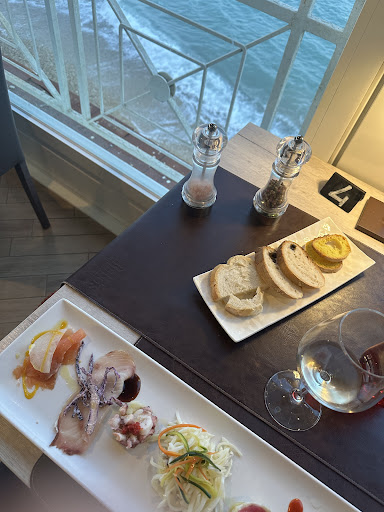 Read moreC’era già stato da solo un anno fa mio marito, che essendosi trovando molto bene ha voluto portarci anche me. Ed ha fatto benissimo. Al momento della prenotazione non era certo ci fosse un posto libero alla vetrata, ed invece si sono impegnati tanto da farcene trovare uno dei migliori come vista. È stato emozionante per me stare praticamente sopra le onde che si infrangevano sulla spiaggia. I piatti poi sono stati sorprendenti: l’antipasto freddo, composto da 7 assaggi, estremamente equilibrato, fresco, saporito. Non solo, io non amo affatto il baccalà, il merluzzo salato o meno non è un pesce che mi fa impazzire, soprattutto il baccalà mantecato che impera da almeno un decennio. Ecco, il migliore della mia vita. In pezzi definiti e distinguibili, la fibra del pesce era perfetta, con la giusta % di latticino che addirittura esaltava e non copriva affatto il pesce. Eccezionale. Il primo scelto, con cozze, ricci e con un fondo di pesto che mi ha entusiasmata. Speciali anche come mantecatura gli spaghetti like vongole. Ma il dolce? Per me finire con dello zucchero un pasto di pesce, è imperdonabile, ma il dessert di ananas a cannolo, che conteneva una crema leggera ed un fondo di salsa di frutto della passione, meraviglioso, rinfrescante, acido, ha mantenuto intatto il ricordo gustativo di tutto il pesce gustato prima....