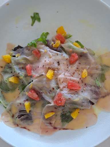 It could be better, but it's actually awful. Let's start with the location: the interior floor was ruined and stained, the open kitchen hadn't been thoroughly cleaned in a while, but the outdoor patio was nice. The menu wasn't accurately described, the tiramisu wasn't really tiramisu but mascarpone cream drowned in coffee caramel, with a bowl of liquid chocolate on the side and a puff pastry that didn't look homemade (but I could be wrong) sitting inside. The gnocchi with ragù seemed to be made with canned ragù, the spaghetti with mullet bottarga, sea urchins, and oysters weren't of the highest quality or quantity, but the flavor was appreciable. The service lacked customer service. The maître d' served only the seemingly wealthiest customers and lacked the attention to detail expected in a restaurant of this type. The only person who stood out was the waiter taking our orders. He was extremely friendly and even greeted us when we left. He was the only one who stood out for his friendliness and professionalism. The bill was not commensurate with the quality of the restaurant, too high for the setting and significantly inflated for the quality...