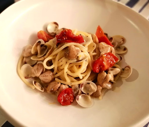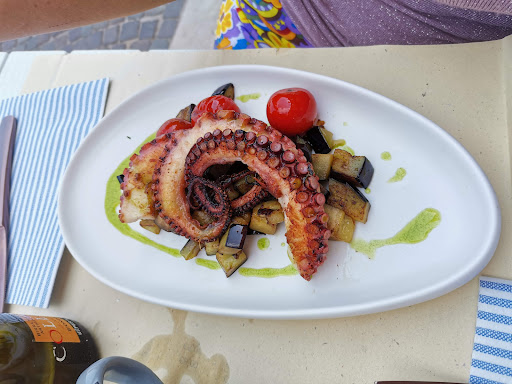 Read moreInizio col dire che il cibo è il vero punto di forza di questo ristorante. I piatti sono particolari e ricercati, inoltre offre molti fuori menù uno più buono dell'altro. Le materie prime sono fresche e la pasta che abbiamo mangiato era tutta fatta in casa. Il locale (almeno all'esterno dove abbiamo mangiato noi) non è particolarmente bello ma la posizione è ottima, sul lungomare di Porto Recanati. Abbiamo assaggiato le polpette di baccalà con crema di ceci e stracciata che fanno parte del menù e meritano veramente di essere provate. Poi fuori menù dei calamaretti ripieni con il ripieno del raviolo maceratese (le parole non bastano per descriverne la bontà). A seguire delle orecchiette con cozze, calamaretti e cannolicchi molto buone e degli gnocchetti di patate con coulis di datterino giallo e frutti di mare che si scioglievano in bocca (questo forse piatto più buono della serata, se la batte coi calamaretti). Unica nota negativa della serata, mentre stavamo finendo i primi hanno iniziato a togliere i tavoli intorno a noi per chiudere il locale (siamo a arrivati alle 21.20 che in estate non mi sembra così tardi) e quindi non abbiamo potuto assaggiare i dolci perché non ci sono proprio stati proposti. Nota positiva per lo scontrino, infatti anche avendo preso 3 piatti su 4 fuori menù i prezzi erano gli stessi delle pietanze in menù. Nonostante tutto ci tornerei perché so che troverei sempre cose nuove da assaggiare per la prima volta....