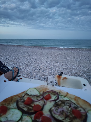 E niente, siamo andati a mangiare la pizza in spiaggia. Ma non potevamo mangiarla su uno dei tanti tavoli? Cioè, carino mangiarla di fronte al mare eh, però...