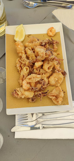 Mangiare in riva al mare è sempre bellissimo. Il pesce è buono. Prezzi medio alti giustificati probabilmente dalla qualità e dal posto. Il tris di carpacci buonissimo. Porzioni gourmet tendono più alla degustazione che alla sazietà 😊. Le pizze che abbiamo solo visto passare (abbiamo scelto il menù di pesce) molto invitanti. La crema catalana, invece, da dimenticare. Fredda e burrosa. Il servizio?? Roberto (uno dei soci credo) spigliato e alla mano. Il primo cameriere (si dice così?) se la tira tantissimo. Con noi è stato sarcastico, al limite della scortesia. Seccato per la nostra indecisione nell'ordinare. Fortuna che non c'era il pienone. L'altro cameriere invece merita 5 stelle. Cortese, sorridente con tutti. Simpatico, pronto alla battuta....