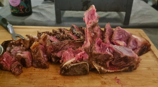 Ottima la Fiorentina: vista prima cruda, poi cotta e poi tagliata di fronte a noi dall'Oste!