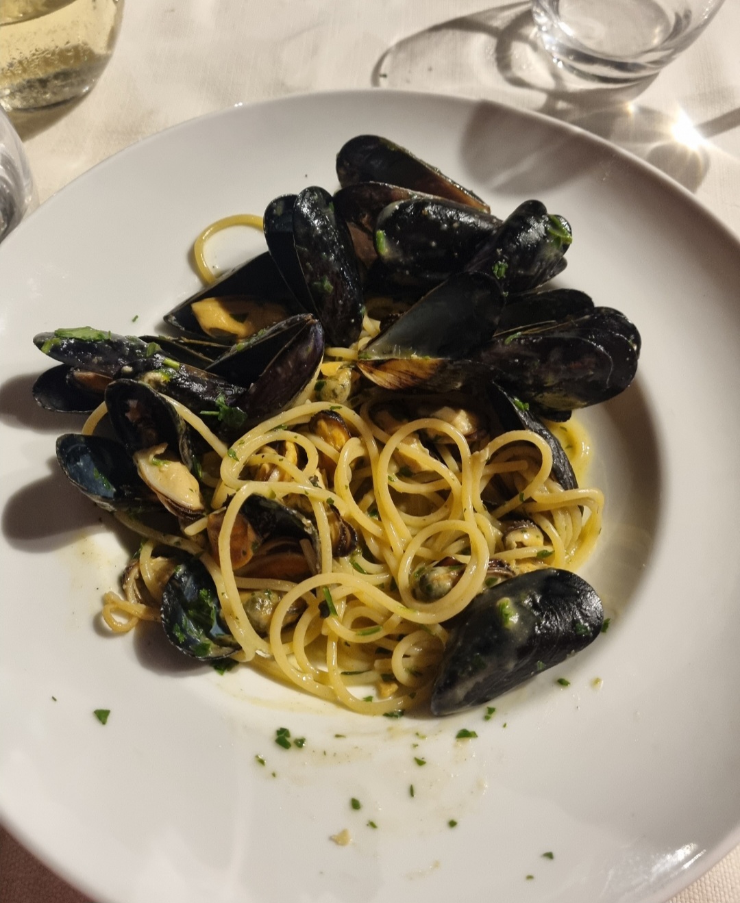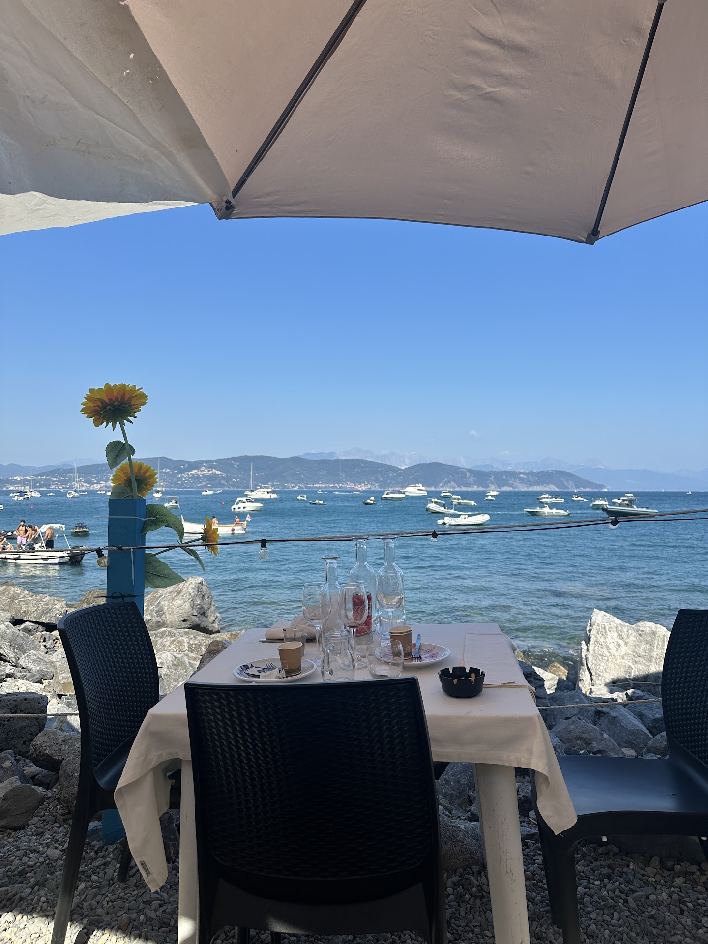 Read moreMai più. Cominciamo dall’ ambiente, a cui ho dato il più alto numero di stelle : sei proprio sul mare, al pozzale( una zona della piccola isoletta Palmaria, di fronte a Portovenere) e dunque natura da cartolina. Ho dato 4 stelle perché, a dispetto dei tavoli con tanto di tovaglia in stoffa, non appena entri al bar ti cascan le braccia. Servizio: giravano per i tavoli un paio di persone che levavano piatti e bicchieri sporchi, ma se provavi a chiedere qualcosa niente da fare, dovevano chiamare l unica( o almeno così credo, io ho visto solo lei ai tavoli) cameriera o il gestore per farsi tradurre la richiesta. Inoltre è stato un servizio veloce ma così veloce che più veloce non si può… e qui passiamo alla sezione cibo Ordiniamo tris di acciughe, trofie al pesto, muscoli alla marinara e qualcos altro che ora non ricordo. Bene, meno di un minuto (???) giuro, non di più, arrivano le trofie e le acciughe. Trofie decenti, acciughe vergognose: 18 euro ( forse 16, non vorrei ricordare male, comunque troppo) per 6, e dico 6 di numero che li ho contati, filettini, di cui 3 fritti, 2 con un cucchiaino ( forse meno) di cipolla caramellata( buona) al fianco, 1 con una non meglio identificabile salsa. Passiamo alle cozze: arrivano tiepide. Qui devo dire che il gestore è stato corretto e me le ha cambiate. Comunque sia, lascio a chi legge il giudizio, per me è stata una esperienza irripetibile. Meglio ma davvero molto meglio quando i tavolini erano alla buona, forse addirittura senza tovaglie, e mangiavi sostanziosi piatti dai nomi normali ad un prezzo accessibile a chiunque. Io non disprezzo, anzi, la cucina gourmet, ma se della cucina gourmet prendi soltanto i nomi altisonanti, le porzioni micro e il tovagliato bianco beh, personalmente...