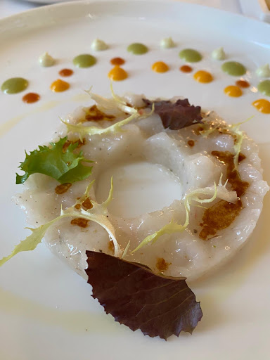 It's a really pretty restaurant, definitely more on the fancy end. The fish was great and very, very fresh. The quality of food was exceptional. You can't go wrong with whatever you take. I was very happy to see that they have vegetable milk (soy) to offer for the coffee instead of the normal one! However, I had the feeling that we were in a big rush. The servers were snatching our plates as soon as we put down the cutlery, giving me the feeling that we had to hurry up. They were buzzing around our table like bees, always observing, which made me a bit uncomfortable. They have a written menu, but not with everything they have to offer. We weren't given those, the dishes and options were listed to us by the server. This might be a huge challenge to go through, especially for those who like to have a moment of peace to choose and slowly go through the food options.