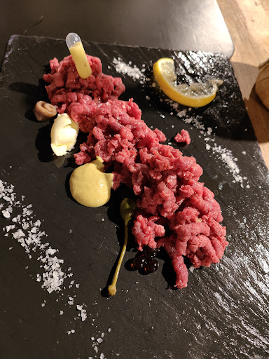 Read moreSinceramente avevo probabilmente delle aspettative troppo alte e secondo me , non le hanno rispettate ma , soprattutto per alcuni dettagli , non mi hanno soddisfatto appieno tipo la sistemazione nel fondo del ristorante , in una zona che definirei l'area giochi dei bambini , e che purtroppo ieri sera erano abbastanza rumorosi e soprattutto piangenti , infatti un paio di coppiette si saranno domandate come mai erano state messe lì; anche noi abbiamo due figli ma ormai abbastanza grandi e avremmo cenato più tranquillamente nella prima parte del ristorante , che ho notato stranamente più libera rispetto al fondo....altro aspetto che ho notato un po' negativo è che essendo su una strada buia e trafficata, il ristorante , ben illuminato e segnalato , non ha un parcheggio adeguato alla grandezza del locale e infatti ho dovuto parcheggiare al di là della strada su una vietta attigua e buia e attraversare a piedi la statale ma probabilmente, quello che definirei il problema parcheggio , non è attribuibile a loro .....ristorante carino ma in fondo c'era pochissima circolazione d'aria e il cibo era composto da un menù base più i vari tagli con prezzi al kg , ben visibili nel loro frigo , ma quello che abbiamo scelto e mangiato , consigliati dalla signora che prende le ordinazioni , sinceramente, non ci ha soddisfatti troppo , forse perché un po' troppo grassa e nervosa nella parte sotto, per i nostri gusti , buona invece la battuta di fassona come antipasto , le verdure di contorno e i menù scelti per i ragazzi.....i camerieri che apparecchiavano e sparecchiavamo erano di poche parole e zero sorrisi , quasi infastiditi direi dal dover lavorare , solo la ragazza era molto gentile !!! Conto in linea col tipo di cena fatta ma secondo me', sarebbe tutto dovuto essere molto ma molto meglio visto l'ottima nomea del ristorante.... TUTTO APPENA SUFFICIENTE...mio personalissimo giudizio che spero non...