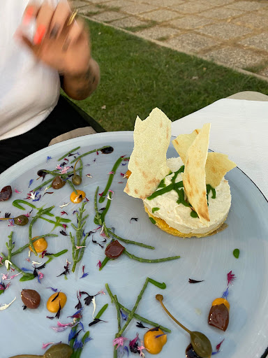 Read moreLocation molto carina, intima ed elegante con tavoli distanziati si crea una bella atmosfera stile lounge bar, affacciata sui campi da tennis fuori dalla calca dei turisti. Ottimi antipasti, con creative proposte ed impiattamenti con fiori e foglie (tutto assolutamente commestibile e ricercato), molto buoni i secondi la frittura è estremamente croccante e molto accattivante con la proposta degli spaghetti fritti; i primi nulla di che, o meglio le proposte sono interessanti ma i piatti non hanno una gran spinta di sapori, consiglierei di avere più accuratezza dal momento che vengono proposti prodotti rinomati come i"ricci di mare" (assolutamente freschi e si sente), si può migliorare!! Per questo il voto perde un punteggio... Top carta dei vini, dai Franciacorta al Prosecco per non trascurare i vini locali dell'Isola. Vi consiglio assolutamente una cena in questa...