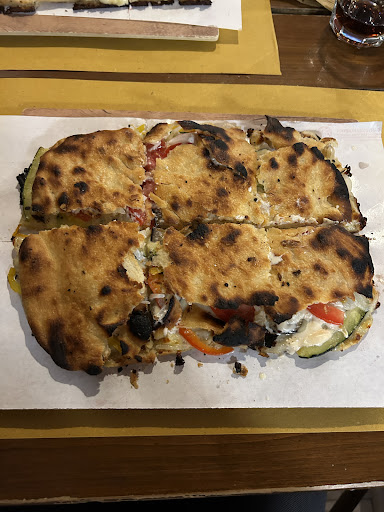 Read morePurtroppo non ho avuto una esperienza piacevole. La torta di ceci, specialità della casa, è certamente molto interessante. Morbida saporita cotta al punto giusto. Pizza invece non all'altezza. Pasta dura e troppo "pesante". La mozzarella utilizzata si è concentrata in un grumo gommoso appena la pizza si è raffreddata. Personale gentile ma non particolarmente professionale. Ci hanno fatto un appunto perché avendo prenotato alle 20.15 siamo arrivati alle 20.23 mettendoci fretta per l'ordinazione. Posso capire le esigenze organizzative ma credo che lo stesso risultato si sarebbe ottenuto senza far notare il "ritardo". Locale interessante per un veloce assaggio della torta di ceci. Meno per una serata rilassante e spensierata. Anche se abbiamo cenato all'interno non ci è stato chiesto...