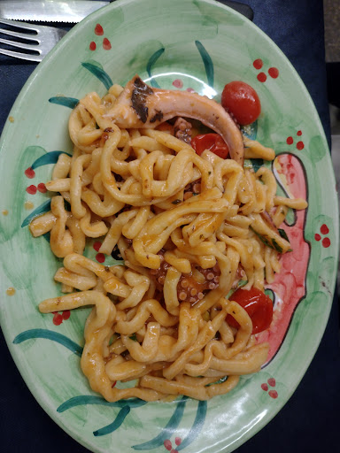 This is THE place to enjoy a delicious and authentic Italien food, cooked with love and passion by Anna, served politely and efficiently by Gino (in the picture, not sure if the name is right). Colourfull ceramic plates, made on the island, are used for all dishes and the home-made bread was still warm when served. We ordered Cozze Marina (mussles in tomato sauce), gnocchi with Gorgonzola sauce and insalata mista. We love Italian food, we have eaten seafood all around the world; however the Cozze Marina Anna prepared for us where the best ever!! The gnocchi gorgonzala were light like pillows with just the right amount of gorgonzola and with just a light dust of parmesan cheese. Another bravo to the cook/chef Anna. We finished our meal with a glass of Grappa and walked happily into the afternoon. Mille gracie per...