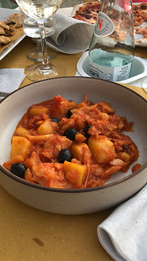 Si trova in una zona del porto tranquilla poiché è vicino al CLUB nautico San Giovanni. Ci siamo arrivati perché consigliati da altri bagnanti. La location è carina seppur nella sua semplicità. Il personale è cortese. Ci hanno "sistemato" nella parte esterna; meglio perché all'interno l'aria condizionata era spenta e all'esterno si stava bene e quindi il clima aiutava (ultima di agosto). Il menu non è il "solito" o con QR code ma è "scolpito" con del gesso su una lavagna rettangolare alta circa 120 cm difficile sia da maneggiare che da leggere ed è"itinerante" tra i tavoli, ma non è il motivo del DUE STELLE. Abbiamo preso tre pizze 🍕 e i tagliolini al ragù di polpo 🐙. Le pizze sembravano quelle congelate del supermercato - che io a volte mangio ma a prezzi diversi - mentre i tagliolini erano spaghetti alla chitarra e il ragù era composto solo dalle ventose e da qualche punta di polpo 🐙; il resto sugo, quindi fate voi! I prezzi esagerati sia per le pizze ma soprattutto per gli spaghetti (ops linguine) alla chitarra che il polpo 🐙 l'ha visto solo sulla tavolozza del menù poiché probabilmente hanno deciso di utilizzare le parti più "caronese" e nobili per altri piatti. Mentre i dolci ossia la torta 🍰 Lizer e alla Ricotta molto buone ... almeno al 90° si sono salvati per il DUE STELLE. NON LO CONSIGLIO ... ma se volete provare fate vobis. PECCATO dover fare recensioni così ai ristoranti ... quando la cucina italiana è una...
