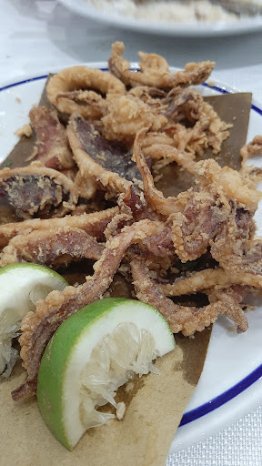 Read moreCalamari fritti NON freschi...vedete voi il colore!! C'era troppo olio aggiunto su ogni piatto che serviva solo per mascherare il fatto che niente era fresco. Mai mangiato così male. Yes this place has giant portions but that doesnt necessarily mean top quality. The food is NOT fresh and has so much oil on it that it serves only to mask the fact that nothing is fresh. Even though this was suggested to us by locals, there are much better places to eat spending the same amount. Shop around and dont waste your money here.