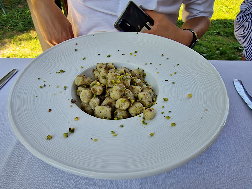 Read morePomeriggio e serata con gran finale in questo locale, in compagnia di amici siamo stati in questo luogo fresco e rilassante, dopo il pomeriggio in riva al laghetto, ci siamo fermati a cena ( previa prenotazione) in questo locale! Ottima scelta , abbiamo cenato fuori sotto il portico dove si gode di una bella frescura serale via dal caldo torrido della pianura, tavoli preparati elegantemente, il cibo di una bontà imbarazzante, mi scuso di mettere solo le foto di 2 dolci, ma sarà stata la fame o la bella presentazione dei piatti, ma ci siamo buttati sul cibo, chi i bigoli con ragù di capriolo ( il paradiso ) chi gli gnocchi con il tartufo, a detta di chi ha avuto la fortuna di mangiarli,eccezionali! Secondi uno più buono dell'altro accompagnati da un mix di verdure molto buono! Dolci particolari e molto buoni! Una nota di particolare rilievo a tutto lo staff per la cortesia e l'attenzione per i commensali, sempre presenti e sorridenti! Un plauso allo chef che a fine cena ha girato tra i tavoli con una parola per tutti e anche qualche piccolo consiglio culinario ai più curiosi! Grande chef continua così sei veramente bravo! Torneremo sicuramente per provare altre delizie!...