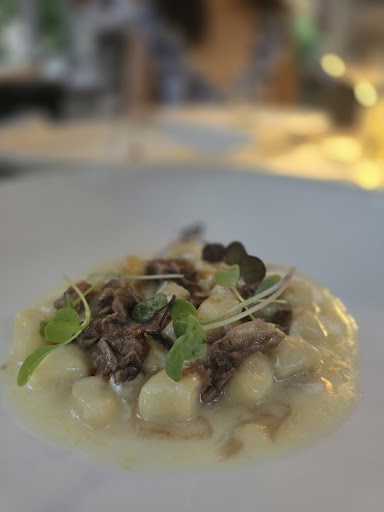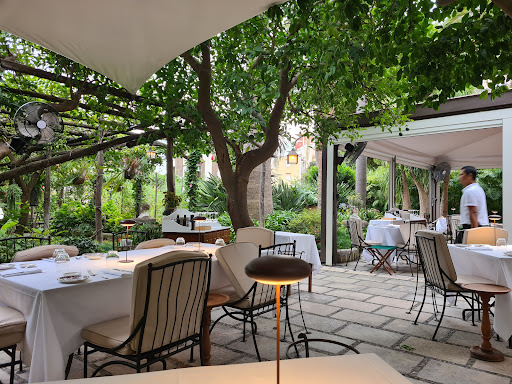 Overall, a very odd experience and menu. Our hotel made us a reservation at this particular restaurant and upon entrance it was beautiful, with alfresco dining in a lovely garden. That was the most compelling draw for this restaurant, as the food was in my honest opinion underwhelming and incredibly pretentious for the price. The menu was expensive, with limited options. the bread was very delicious, served warm with a variety of bread sticks. There was a complementary first course, a “panini with tuna, cheese, and cucumber in a cold tomato sauce. An interesting concept however did not work and was very odd and unpalatable. We ordered cacio e Pepe with prawns and tomatoes, and tomato risotto with scampi. The cacio e pepe had good tagliatele, however had two small prawns, a single tomato, not a single bit of black pepper, and an Alfredo sauce that was equivalent to American Alfredo out of a jar. For €26, a scam. The risotto was bland, with Al denti Arborio and a tomato sauce that tasted like chef boi arde, topped with two small shrimp (debatable if they were cooked or not). This was followed up by a plate of bite sized grocery store esque desserts, once again complementary and not wanted. I hate to write a bad review, but I just found this to be incredibly disrespectful to Italian cuisine. Honestly, I am shocked by all the good reviews and I wonder if these people have ever had real quality food, or are as ignorant and or pretentious as the restaurant. So far our worst meal out of ten days in Italy, including pizza and sandwiches. The perk of the night was our very sweet assistant server, who took very good care of us pouring water, wine, and brought every dish. We only saw our main server about three times throughout...