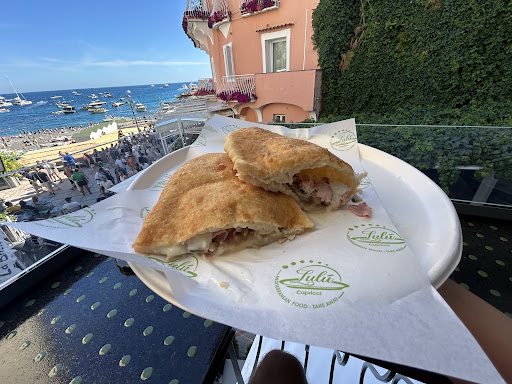 We recently arrived in Positano and a friend recommended for us to eat at Pupettos. The entire restaurant was open, they were so rude, would not serve us so we walked into town. Capricci was packed and they had one table left and they sat us right away. Claudio was our waiter and even though it was his first day, he was so nice and professional and helped us get seated right away and helped us with our six-year-old daughter who was very tired from the train and boat to get to Positano. We skipped lunch so we were really hungry and I think we might’ve ordered almost everything on the menu because we were so hungry but honestly everything we tasted was incredible, we ordered a couple pizzas. They were both amazing the pistachio pizza and the margarita we finished both of them. Also, the pistachio crusted salmon was incredible. We are actually ordering it again tonight. The grilled prawns were amazing. My husband loved them since then we actually went there for lunch today and everything was also perfect again! The best thing about this restaurant is that not only are they super friendly and accommodating and not snobby. Also the kitchen is exposed and open, and they cook in front of you and you can see how clean the kitchen is and also, you have a nice breeze to the marina. Also the bathroom were super clean which also says a lot!!! Capricci is a special place and trust me, we are very picky and this has surpassed all of our expectations ❤️❤️❤️Also a great shout out to Claudio…thank you for going above and beyond and making our first day in Positano very comfortable...