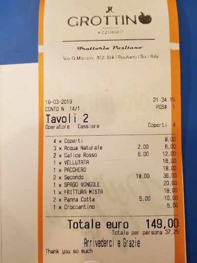 Unfortunately, despite our best attempts to be patient, polite, conscientious tourists, we’ve experienced a lot of similar treatment during our stay in Italy over the past couple of weeks, and we now have an extremely poor perception of Italians as a whole. This is a very beautiful country, and it breaks my heart to say this, but I don’t think we’ll be returning ever again. I can’t comprehend the incredible rudeness and cruel disregard for basic human decency that we’ve encountered here, and Il Grottino Azzurro has really earned their distinction as the awful icing on the awful cake of this...