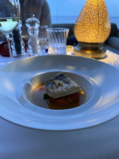 However, what truly marred the experience was the exorbitant price of the espresso coffee. At 15 euros, the expectation is that it should be made from beans of gold. This outrageously expensive espresso left me feeling quite foolish for ordering it. To add to the frustration, the price of the espresso was not listed on any menu, which felt deceitful. The service was mostly ok, polite but not friendly to English speaker, I had a hard time communicating with staff in English, understandable but could be better. On the positive side, dessert was well prepared, and the view from the restaurant is indeed incredible. The 10-euro price for water was reasonable given the setting.