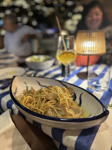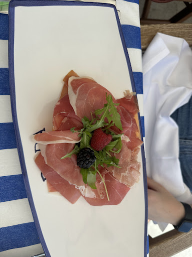 Husband and I went to three different Michelin restaurants while in Italy and this was our least favorite. We got there a bit before our reservation and were seated right away. However, the outdoor seating is quite unite. There are two long rows of tables and chairs, one close to the rocks/cliff and one close to the sidewalk looking out over the beach. The staff member seating us sat us in a far back table next to the rocks when there was ample tables next to the sidewalk/beach view. To me, this table was like the nosebleeds when you go to a game. Nobody really wants to sit there. I thought this was odd and asked if we could be moved to a table closer to the front and not next to the rocks/cliff. I sensed some hesitation about this, mild, which I didn't quite understand. Whatever though. Moving on. The menu is old and worn down looking with typos and spelling errors. Not the biggest deal, but for a Michelin grade restaurant not a good look. There is no QR code either which seemed odd.