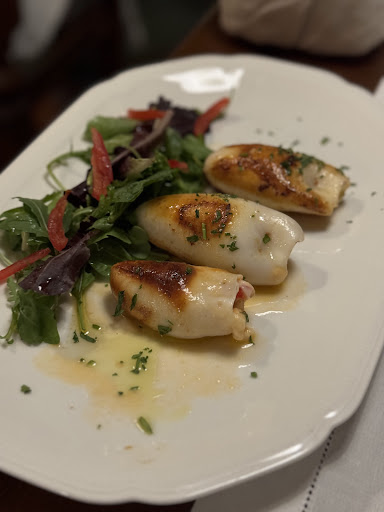 The appetizer (stuffed grilled calamari) was a whopping €24 for 3 pieces. The calamari was a little on the burnt and rubbery side with the stuffing barely being seasoned.