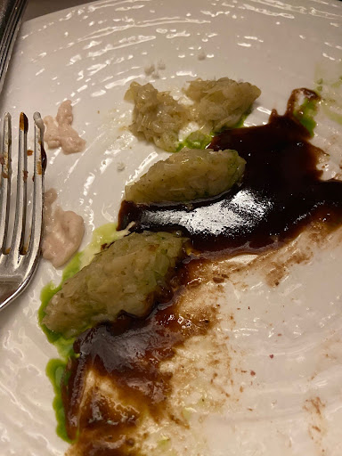 The waiter cane out with a taster compliments of the chef. We weren’t sure what it was so my husband asked the waiter who simply snapped ‘its compliments of the chef’ and walked away.