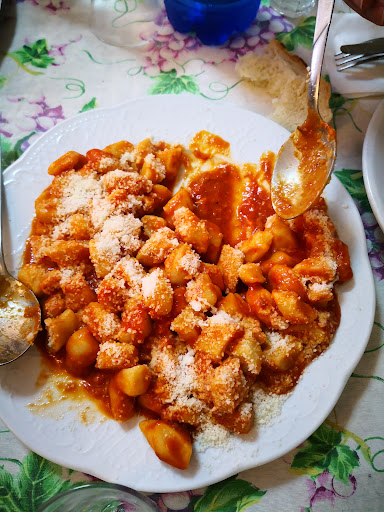 Viaggio della speranza con un camion veramente malridotto e con accompagnatore pensionato in stato di agitazione continua. Al ritorno quando l'ansia si era smorzata, siamo stati colti da un pericolosissimo colpo di fame, complici l'arietta di montagna e i continui cambi di altitudine. Il mio accompagnatore pensionato ricordava di questo posto dove aveva mangiato anni prima: "é una signora che cucina a casa sua". Giriamo un po' per trovare la signora ma niente, mi lancio sul navigatore e trovo vari nomi ma la risposta del mio accompagnatore pensionato é sempre la stessa: "no il nome é troppo raffinato non può essere", appena nomino "lo stinco" il mio accompagnatore dice: "si andiamo". Individuiamo da lontano quello che pensiamo possa essere il marito della signora, lo incalziamo con un : "si mangia?!?" E lui: "qua si magna sempre". Parcheggio davanti a una bellissima fonte antichissima. Entrati saltano subito all'occhio le tovaglie comprate su postalmarket e una sala che trasuda storia da tutte le parti, ti senti subito a casa. Ci sediamo di fianco a una stufa della Nordica, che come minimo avrà bruciato tutta la foresta amazzonica, tenuta sempre alla massima potenza dal padrone di casa e immediatamente sublimano tutte le fatiche della giornata. Il mio accompagnatore pensionato, fissato con la trippa provata anni prima, non fa altro che ripetere alla signora "voglio la trippa" mentre cercavamo di ordinare e quindi per sbloccare la situazione dico alla signora: "faccia lei". Scelta azzeccatissima, arriva all'istante un vassoio con coppa e prosciutto di una qualità ottima con piacevoli sentori d'arancia, bruschette fatte al volo sul fuoco con l'aglio (potentissimo ho fatto scappare le persone per giorni, quindi cosa positivissima), vino rosso e acqua frizzante. Non ha deluso le aspettative la trippa che mi veniva pubblicizzata da ore: un bel testo che le persone normali consumerebbero in 4, piccante e non troppo sciacquata e piccanti anche i broccoli che la accompagnavano. La genziana amarissima non ha fatto altro che confermare il pranzo non adatto ai palati delicati e anche lei apprezzatissima. I servizi di piatti tutti diversi, l'amorevolezza della signora e il cibo, mi hanno fatto sentire veramente a casa, grazie di tutto. Fortunatamente il mio accompagnatore pensionato dopo il pranzo si é...
