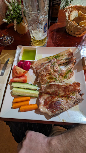 4 year old menu on Google, so not that price these days. If you're going to charge someone for old bread and oil at least bring them a plate to eat it on! Was either that which was on the bill for €2 or worse... Genuine mistake by waitress (language issue) as I asked if the mixed grill came with potatoes which she answered yesterday. They didn't come out so asked the waiter then where they were....5 mins later of my meat going cold and they arrived, a bowl for 2 people. At the till we sorted this out I thought, and the €2 service charge, €18 meal, wine at €5 and beer at €6 by my reckoning is €31, but he went with €33. I have been overcharged as a tourist 2 of 3 times I ate out in Sardinia, not once in Sicily. Meat was good other than the pork being the fattiest bit of belly I've seen and the salad little to be desired. Wouldn't go back personally as the experience left a bitter taste in my mouth but if you're Italian then I'm sure things will run more smoothly and the other dishes I saw looked better than...