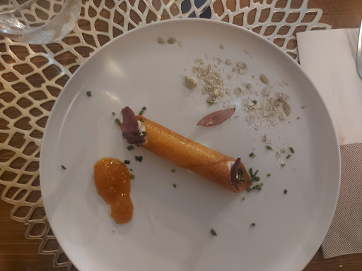 Read moreDeciso di fare un giro a Porto Torres durante la nostra vacanza ad Alghero, ho trovato per puro caso questo ristorante ben quotato tramite Maps. Antipasti: Zuppetta di Mare e Polpo. La prima è per i golosi della scarpetta (punto neg le cozze che purtroppo avevano poco sapore, il resto davvero molto buono, sugo compreso), il secondo è davvero ottimo e un gusto per gli occhi (piatto top della serata). A seguire Riso al nero di seppia, stracciatella e scampi al lime e Rana pescatrice. Riso ottimo, il lime forse esce un po’ troppo ma si accompagna bene con il resto (ottimo piatto), la Rana molto buona (poco da aggiungere ad un classico secondo piatto, si conferma la qualità dei prodotti scelti). Il tutto accompagnato da due calici di Vermentino. Quello che vorrei esaltare è la cura e la dedizione dello Chef e la sua cucina a vista: quando ci metti amore nel fare le cose, i piatti hanno un...