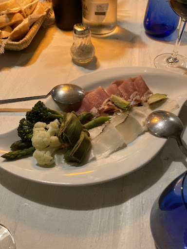 Small, cozy restaurant with mostly seafood. We liked the place snd asked for an alternative menu. The owner was very kind and proposed cold cuts with vegetables as a starter, followed by ricotta ravioli for me and a steak and roasted potatoes for my husband. We drank a red wine they produce by the glass. Good quality and excellent service...