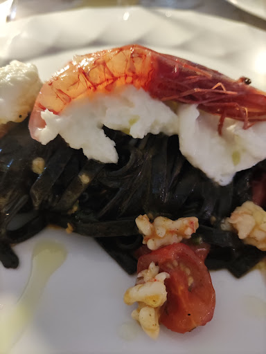 Read moreQuesta unica stella merita una spiegazione dettagliata. Locale molto carino e accogliente, abbiamo facilmente prenotato con google maps. Dispone di un parcheggio all esterno. Essendo arrivati tardi oggi a Porto Torres e avendo pranzato tardi, decidiamo di ordinare solo un primo per capire quanto ci avrebbe saziati. Ci arriva il tagliolino nero: senza fare troppi i sofisticati (magari la pasta era un po scotta e la burrata non era eccezionale, ne parlo per esperienza di vita barese), finiamo tutto perché veramente saporito. Decidiamo quindi di ordinare una frittura in due e un altro calice, e qui i punti antipatici. La cameriera riempie un quarto di calice e glielo faccio notare, chiedendo di rabboccarlo come si dovrebbe. Può capitare, nessuno si è dispiaciuto (quanto meno non noi, e spero nemmeno loro). Nella foto il confronto tra un calice bevuto durante la serata e il calice riabboccato, come giustamente dovrebbe essere, dopo aver notificato la cameriera. Prima di farlo notare, la quantità di vino versata era poco superiore a quella del primo calice.