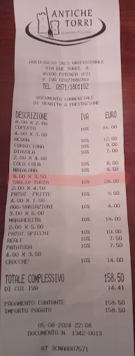Prima recensione: Abbiamo prenotato un tavolo per quattro persone per le 21.45. Abbiamo atteso all'entrata più di mezz'ora. Però la serata si è ripresa quando ci siamo seduti al tavolo. Il personale è gentile e abbastanza veloce. Non ci sono molte pizze rosse, e le birre sono un po' care. Le pizze erano molto buone, la mia era con baccalà e cruschi e mi ha sorpreso. Mi aspettavo di più sull'ambiente in quanto la pizzeria si chiama L'antica Torre, quindi mi aspettavo di salire, invece, per entrare in pizzeria si scende di un piano e non ci sono finestre da nessuna parte. Nel complesso, però,...