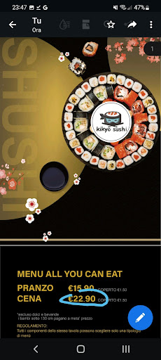 Read moreIl Ristorante kikyo Sushi ha saputo conquistare il mio palato con una straordinaria esperienza culinaria. La freschezza degli ingredienti utilizzati per preparare i vari piatti di sushi è evidente, e la presentazione è un vero spettacolo per gli occhi.