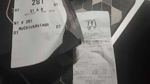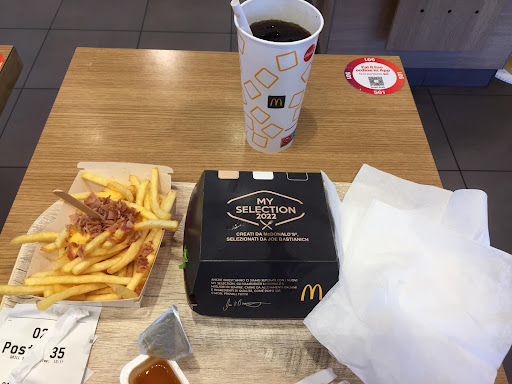 Read moreil luogo è davvero un casino, male organizzato e per nulla invitante. sono stata pochi minuti ad aspettare ma è stato davvero disagiante. io con altre due persone abbiamo cercato di ordinare attraverso il monitor un menù che per quella data era in sconto (sull'app di McDonald's), ma appena inserito il codice ci diceva a tutti e tre che questo fosse già stato utilizzato (cosa impossibile). allora dopo aver ordinato alla cassa, mentre aspettavamo il nostro ordine, non ho potuto che notare il secchio per lavare a terra (con l'acqua sporca) in vista, poco dietro alla cassa, lasciato lì come se nulla fosse (anche se il pavimento era visibilmente sporco essendo che camminando, le scarpe si attaccavano al suolo). un'altra cosa che non mi è stato possibile non notare è stato come "puliscono" i vassoi su cui si riceve l'ordine: passando con un semplice straccio (presumo bagnato con acqua), ottenendo che i vassoi fossero ancora sporchi e appiccicosi degli ordini precedenti e su cui poi venivano posti gli ordini successivi (...tra cui i nostri). il cibo è stato altrettanto pessimo: il menù era composto da patatine, bibita a scelta e McChicken. il panino era freddo e non sapeva di nulla come anche le patatine, la coca cola era ok. il tavolo all'esterno, oltrettutto, era ancora sporco dalla consumazione di prima, essendo che vi era stato lasciato il vassoio con le carte sporche e i contenitori delle patatine vuoti. il personale mi è sembrato gentile e...