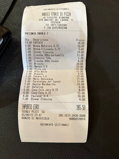 Morale delle favola, usciamo dalla pizzeria dopo 3 ore dall'entrata, con delle pizze che non ci sono piaciute (prezzate molto alte) avendo pagato 28 EURO per 3 ciotoline di patatine e senza uno scontrino fiscale ma solo...
