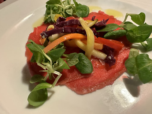 Read moreOlio, tartufo e bisonte. È il profumo della griglia ad avvolgere gli ospiti di questo angolo nella rinomata Conca degli Ulivi, in quel di Pove del Grappa. Se poi si aggiunge la carta degli oli sul tavolo apparecchiato come una volta, allora si capisce che siamo in un posticino davvero speciale. E lo confermano i sapori che escono dalla cucina, fatti di piatti della tradizione dove a far voce grossa è il morlacco in tutte le sue sfaccettature casearie, legate perfettamente con il pregiatissimo tartufo del Grappa, raccolto a pochi passi da qui e raccontato dalla cortesia del personale di sala. Ma il forte, anzi fortissimo tema, sono le carni, che riempiono il caminetto con fumose digressioni tra scottone locali e pregiati angus di ineccepibile marezzatura d’oltreoceano, lasciando lo spazio anche a qualche chicca yankee come il taglio del bisonte. E vini, ovviamente, del territorio e non solo, per innaffiare una delle più belle esperienze culinarie tra...