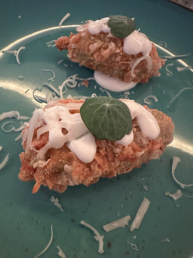 We had zucchini flower, and shrimp appetizers. Both were good, but my zucchini flowers may have been prefrozen?
