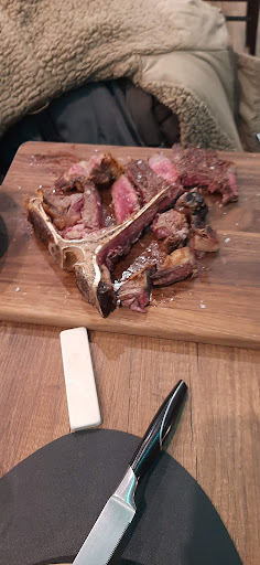Menu : eh...molto ricercato senz'altro. Peccato che sia soprattutto scena. I sapori sono blandi, molto blandi, sospetto causa volontà di risparmiare sugli ingredienti. Le porzioni, commisurate al costo, sono spartane. Ho provato la tartare, pagata 12 euro mi pare, neanche un cucciaino di carne. Nota positiva: la carne era buona e l'idea di farti completare la cottura sulla pietra lavica mi piasce, diesci. Le due fette che vedete in foto sono costate 63 euro. Anche in questo caso mi è parso piuttosto caro.