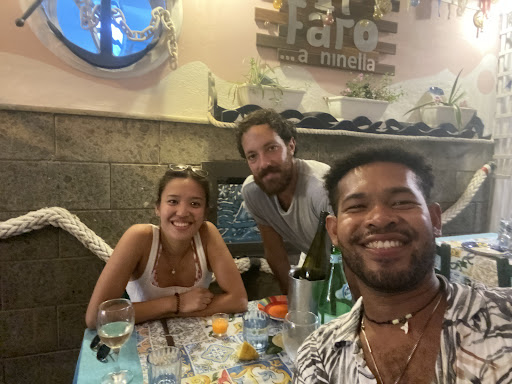 Read morePrimo giorno a Pozzuoli io e la mia fidanzata (Nichole) rimaniamo incantati dalla sua bellezza e dei suoi abitanti. Cercavamo un ristorante tradizionale dove poter mangiare e assaggiare le specialità del posto, dopo diverse ricerche su internet troviamo IL RISTORANTE di gestione FAMILIARE ( il faro a ninella) a pochi metri da noi. Appena arrivati vediamo Salvatore e non perdiamo tempo a chiedere se potevamo mangiare, Salvatore ci ha subito portato dell’acqua pane e una bottiglia di vino locale. Poi ci ha proposto dei antipasti di 8 portate (è stato il massimo che siamo riusciti a mangiare) fatti da (Edoardo lo chef) cioè il fratello abbondatissimi ora vi metto le foto e poi siccome non mi sazio mai mi sono fatto fare anche delle trofie al pesto di mandorle,limone ne e polipi. Una vera specialità mia mangiata poi per finire ci ha deliziato con del MELONCELLO fatto dalla Mamma! Appena ci ha portato abbiamo subito prenotato per il giorno seguente che era l’ultimo soggiorno a Pozzuoli. Nella seconda sera che chiamo arrivati Salvo ci ha dato lo stesso tavolo del giorno antecedente e ci ha graziato con del spaghetti quadrati ai frutti di mare e una frittura di mare che era un capolavoro.il faro a ninella mi è rimasto nel cuore perciò vi annoio con questa recensione ma 5 stelle è troppo poco per quel che si meriterebbe in realtà. IL FARO A NINELLA Grazie dell’esperienza...