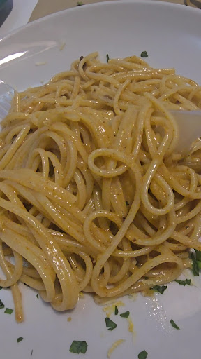 Sole Mare e palato , e cosi che oggi voglio recensire la mia esperienza presso questo localino , sito nelle finanze del porto di Pozzuoli . Appena arrivato c'era una fila abbastanza lunga , ma l odore della cucina che inebriava l aria circostanze non mi ha fatto desiderare dall'attendere un un tavolo libero , e ammetto a grande sorpresa che la fila scorre veramente in modo velocissimo , quindi nn fatevi condizionare e attendere , sarete ripagati ! Abbiamo ordinato due fritture di gamberi , servite caldissime con una frittura dorata , leggera , e abbondante , accompagnato da un bicchiere di falanghina bianca fredda al punto giusto che sposava divinamente il fritto . Invogliati sempre dal profumo di mare che usciva dalla cucina , abbiamo deciso di prendere un primo perché nn potevamo andare via senza assaggiare anche quello , quindi ne abbiamo preso solo uno , era veramente squisito . Consiglio vivamente di provare la cucina di questo locale , ne rimarrete soddisfatti , oltretutto la posizionato proprio di fronte al mare , e nelle vicinanze di una scogliera accessibile a piedi per poter passeggiare , per la rende il dopo pranzo o cena , più interessante , e se in dolce compagnia romantico . Complimenti da ritornare . Due fritti di calamari abbondanti , un primo ai frutti di mare , un calice di vino 0.40 circa , servizio e coperto 32 euro , più onesto di così non si può ,...