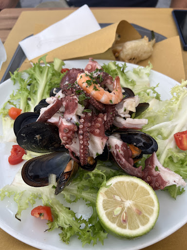 Read moreUna picevolissima sorpresa di qualità tra le tante costose"trappole per turisti"(anche stellate e segnalate da guide)che "infestano" la bellissima zona della darsena e nelle quali mi sono sfortunatamente imbattuta più volte. Sembra una semplice friggitoria street food ma ha un fornito menù di pesce freschissimo ,cucinato al momento.Antipasti,primi(anche linguine ai ricci di mare),secondi gustosi,abbondanti e a prezzi contenuti.Il tutto nella bellissima cornice della Darsena.Il segreto è nel servizio:non ci sono camerieri.Si ordina al bancone,poi si viene chiamati,si prende il vassoio e lo si porta ai tavolo fuori.Ovviamente anche i fritti(i cuoppi)sono buonissimi e ci sono wrapp gourmet a base di pesce.Io ho preso una zuppa ai frutti di mare deliziosa e super abbondate e un misto di fritti,falanghina,prosecco:32 euro.Era tutto così abbondante che ho portato via i fritti che non sono riuscita a finire.Gentilezza,allegria e rapidità da parte dello chef che è anche il proprietario.Tornerò...
